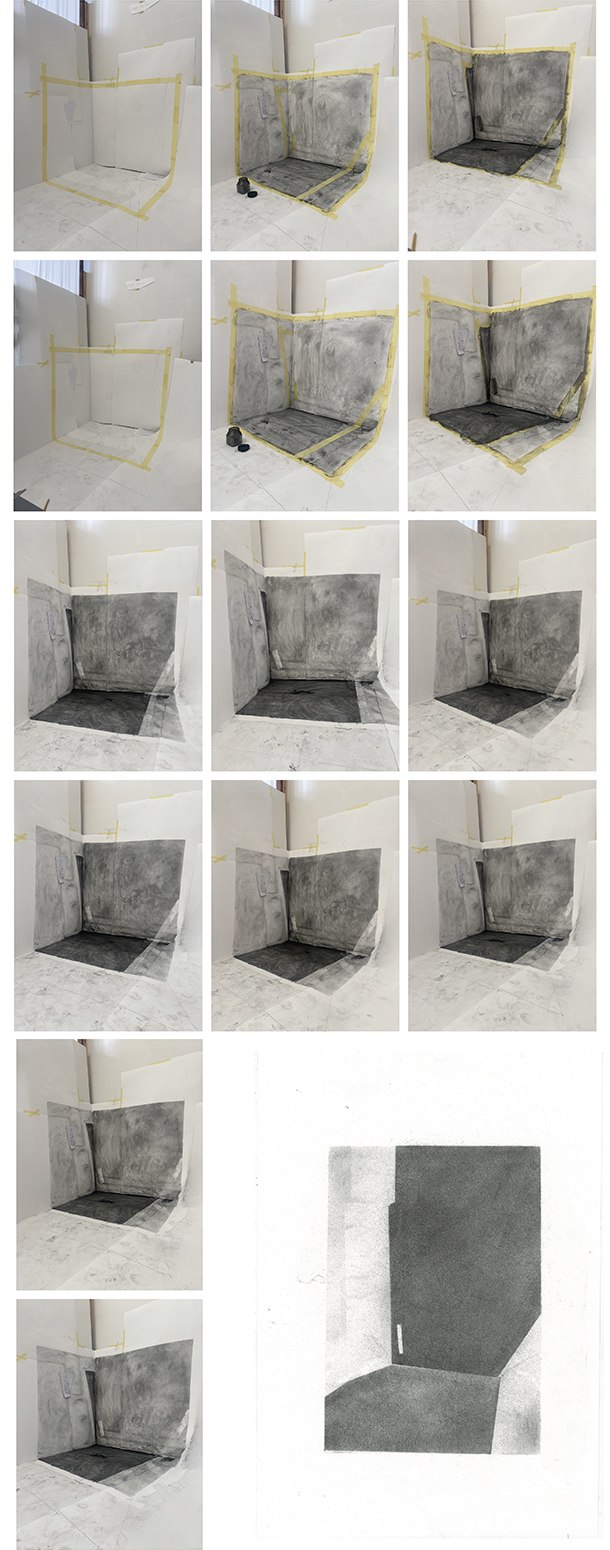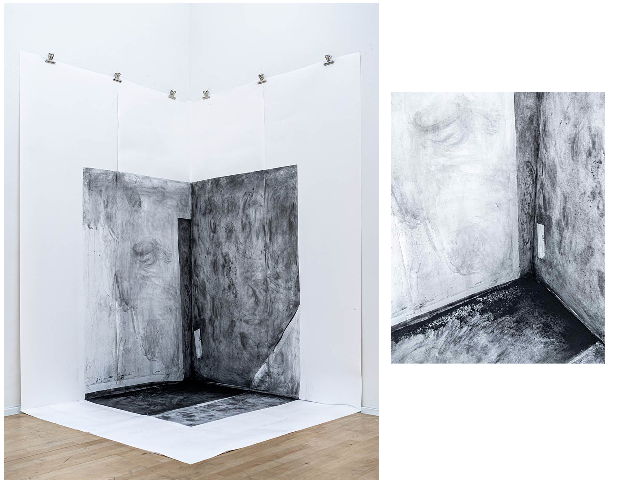Graphite powder on paper, 250x250x230cm